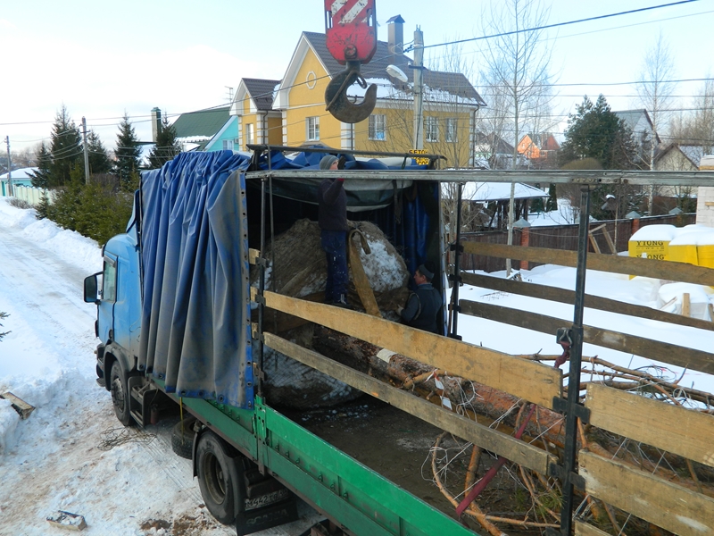 Посадка крупномеров (больших деревьев)