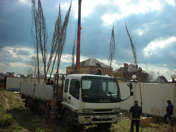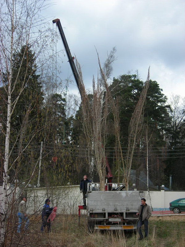 Посадка крупномеров (больших деревьев)